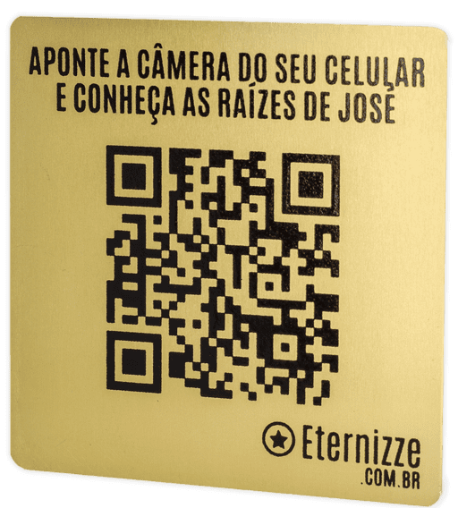 Tag memorial feita em metal, no tamanho 8x8 cm, personalizada com QRCode que direciona para uma página exclusiva com informações do seu ente querido.